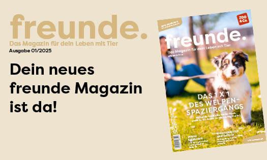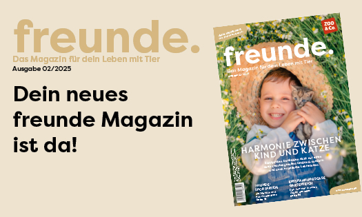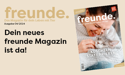 freunde - das Magazin für Tierfreunde erscheint quartalsweise und liegt in teilnehmenden ZOO & Co. Märkten kostenlos aus. Regelmäßig berichten wir über spannende Themen aus der Welt der Tiere.